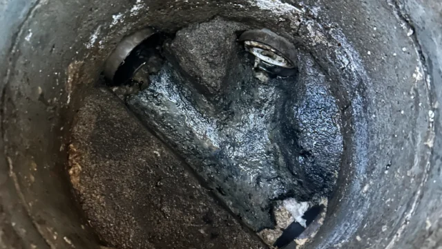 小樽市にて、トイレが流れないとのご依頼をいただきました。便器の詰まりを疑い脱着しましたが異物は確認できず、屋外の排水桝で詰まりが発生していることが判明。高圧洗浄作業を実施し、詰まりを解消しました。なお、排水桝の一部が破損しており、再発の可能性がある旨をお客様へご説明しています。