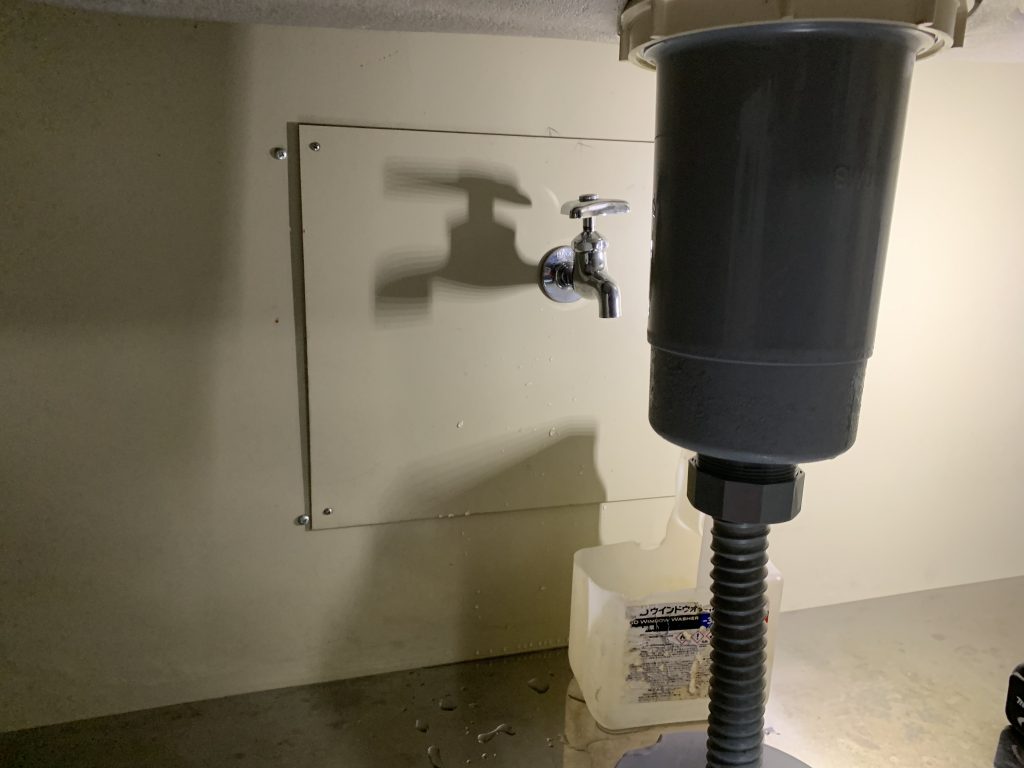 台所収納内によく付いている、この蛇口は水抜きの際には必ず開けましょう!!