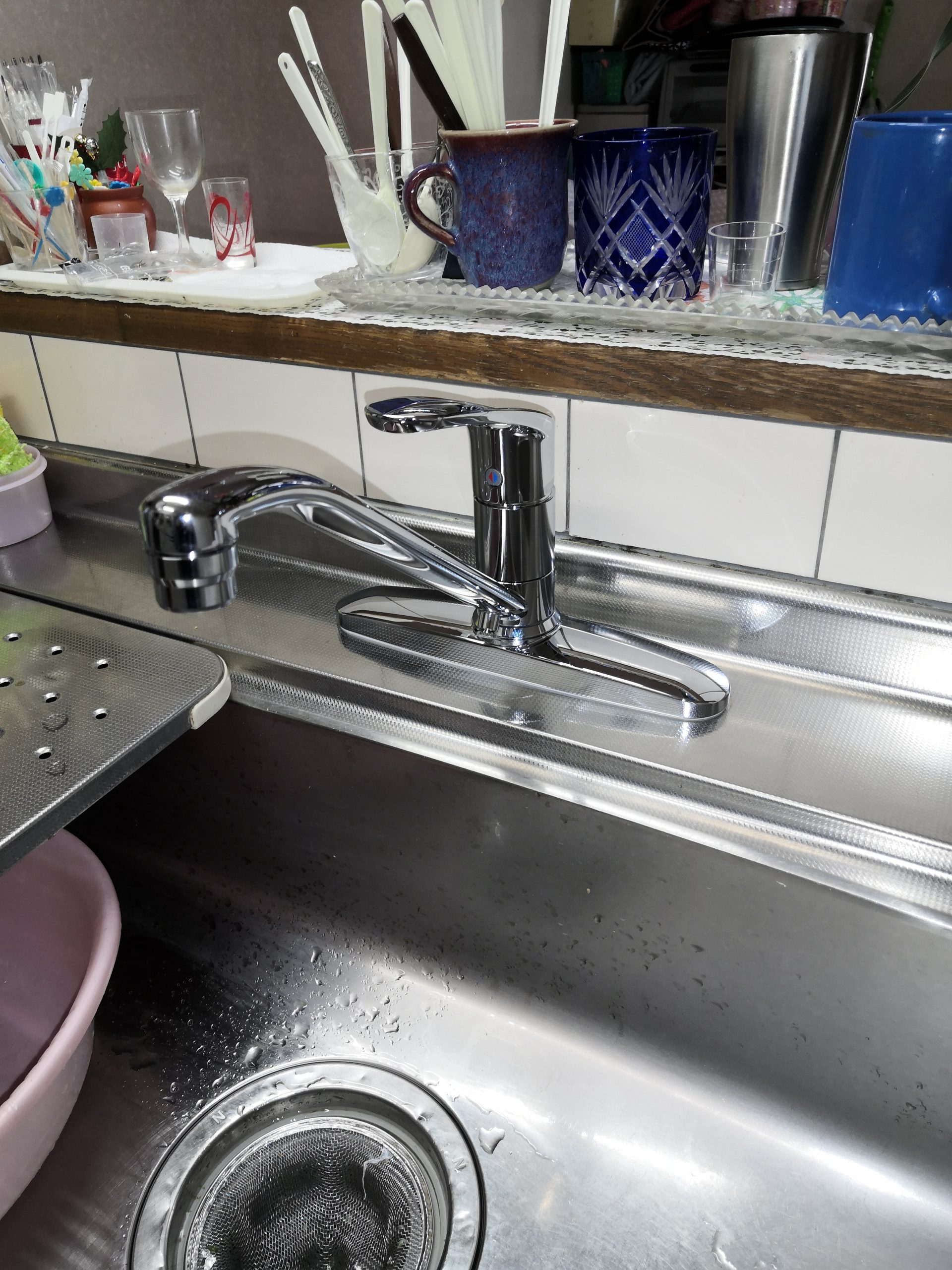 前の使用していた水栓が、所々樹脂パーツとなっていましたが、今回の新しい水栓はフルメタルになっていて、少し高級感が増したように見えますね♪