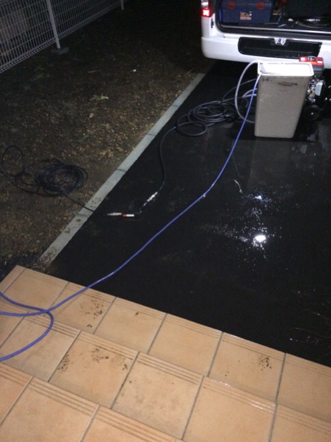 お客様に説明をし、すぐさま高圧洗浄作業を行い、詰まりを徐々に除去していきました。