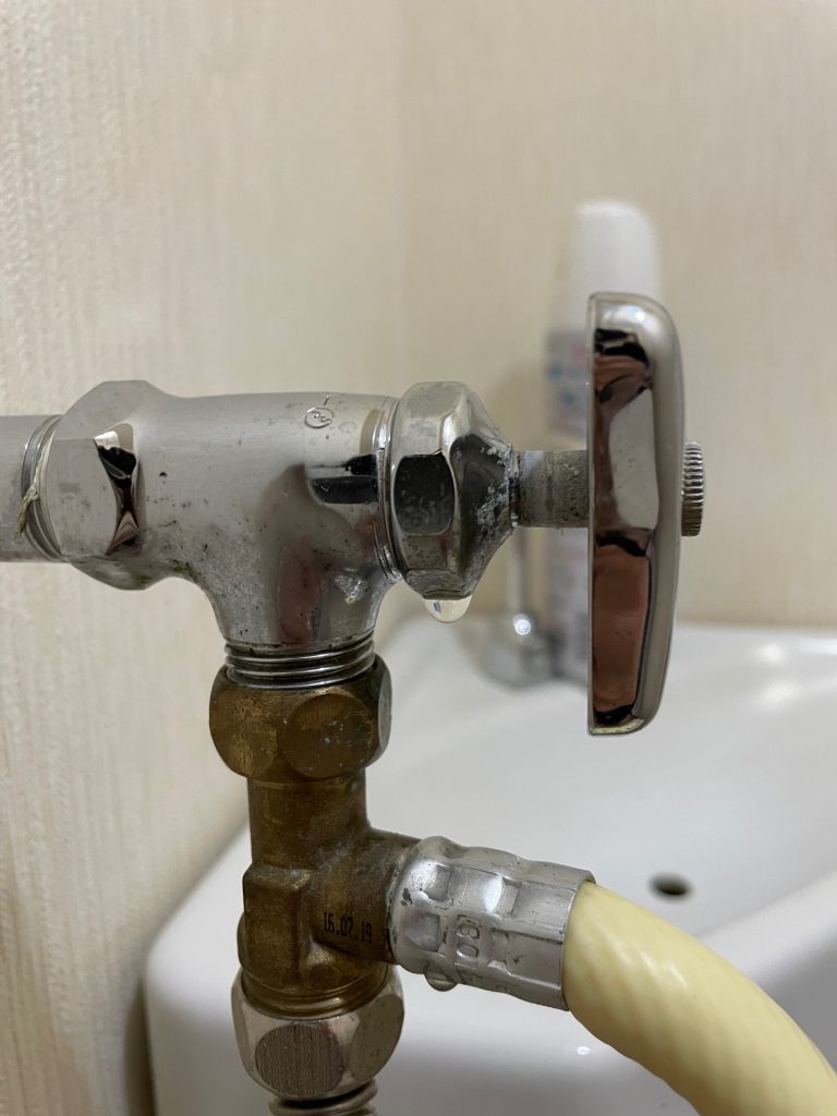 札幌市北区-トイレの配管のハンドル部分からポタポタ水漏れしてくる