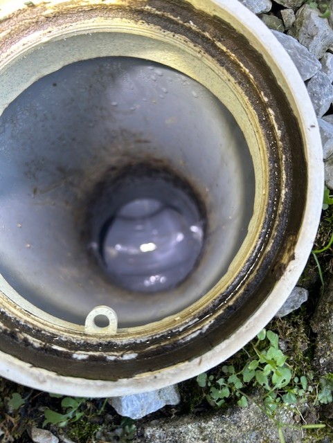 調査した所、外の排水ますが詰まっていたので高圧洗浄作業させて頂きました。