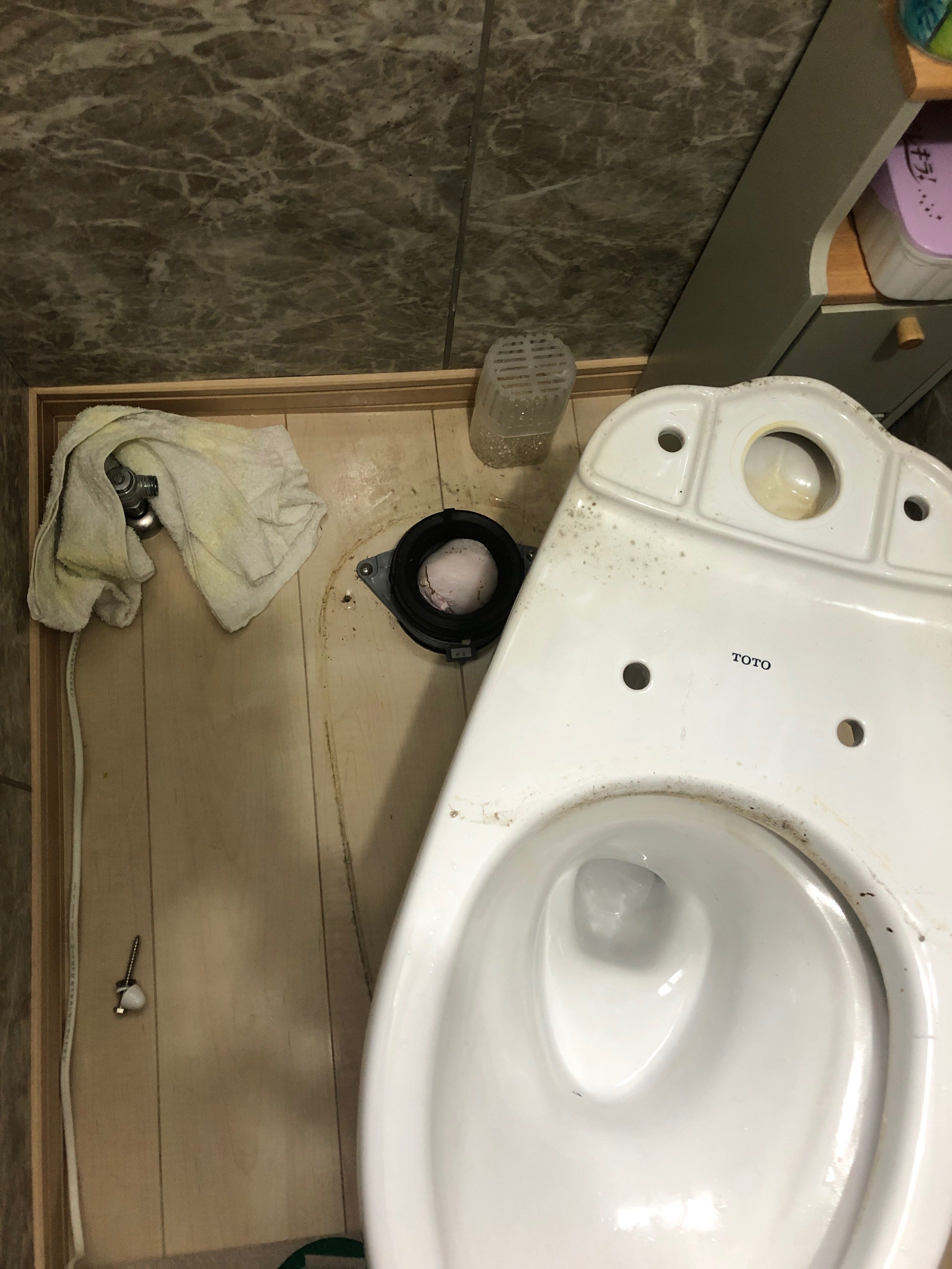 最終手段でトイレ本体を脱着して排水を覗いてみると、おむつがしっかり挟まっていました。