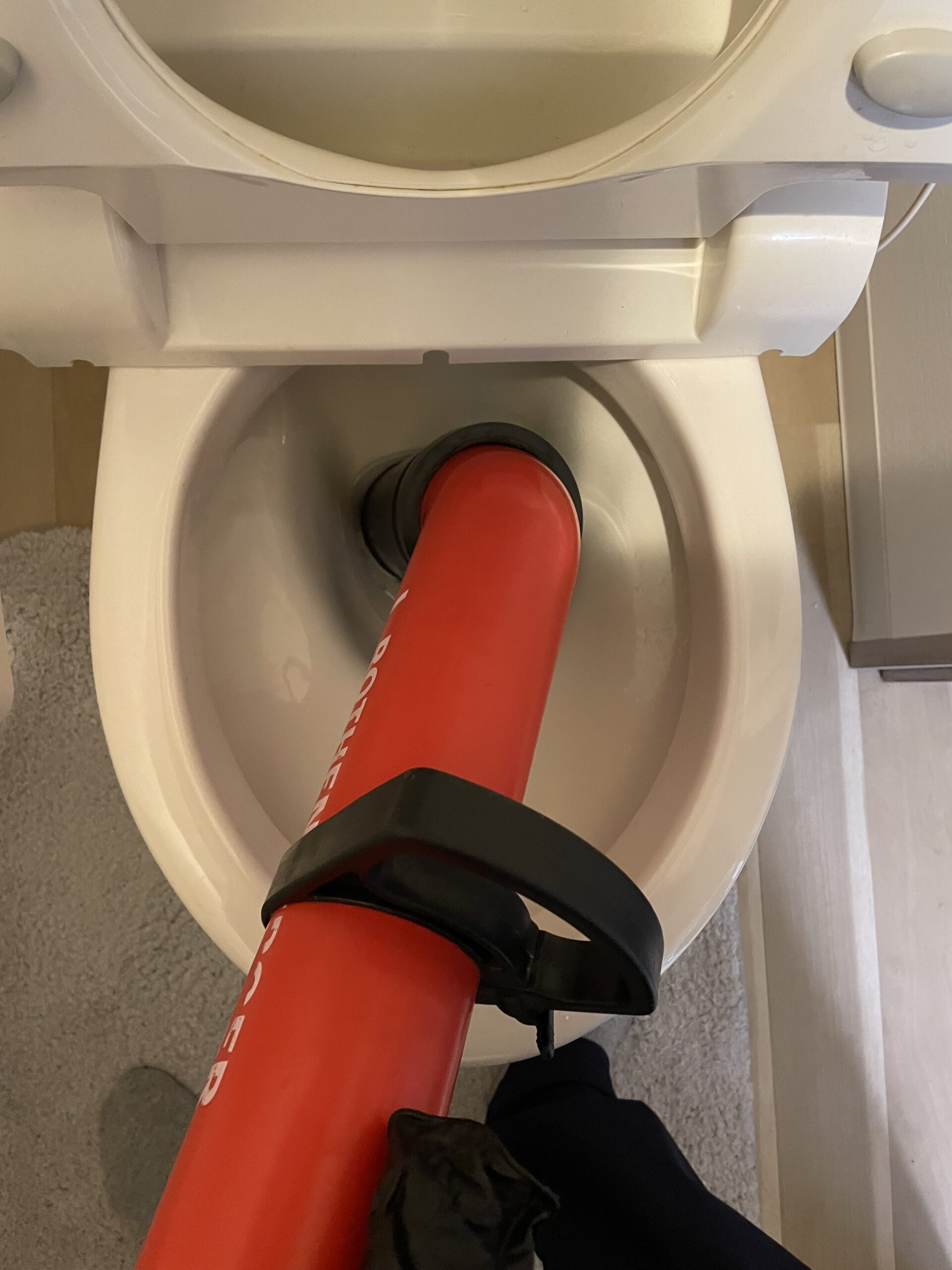 トイレに紙を流しすぎたかも知れないとのことで、詰まりの解消依頼をいただきました。