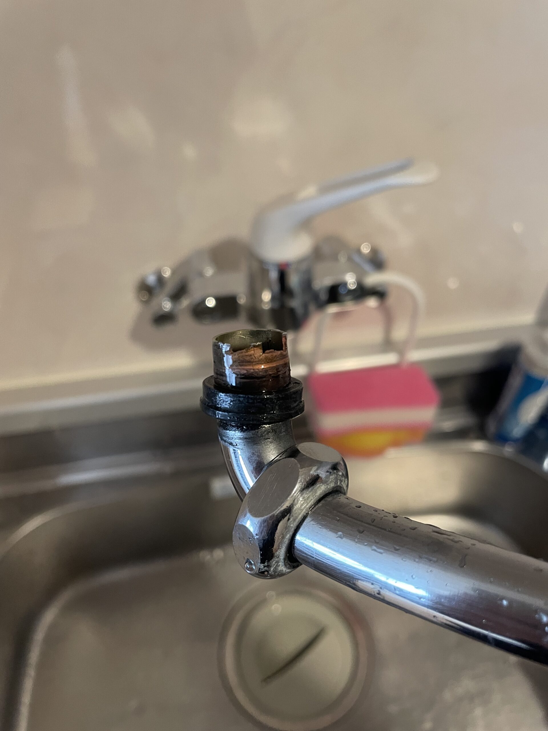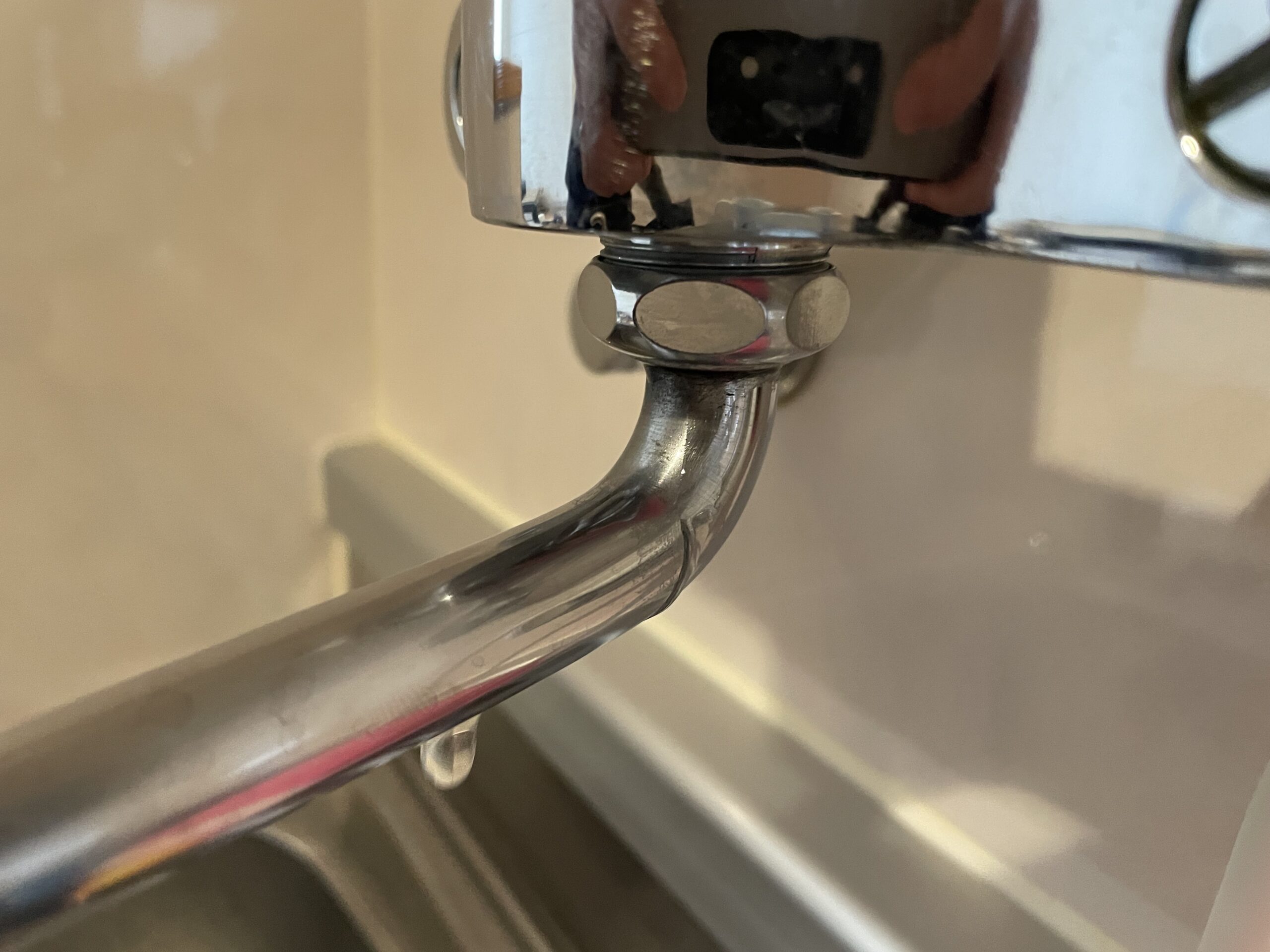 江別市-台所水栓を使用するとスパウトから水漏れ・・・根本の接続部から漏れてくる