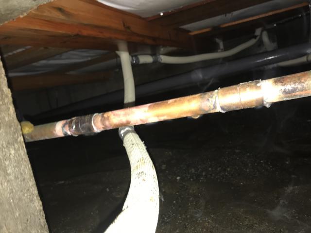 おそらく経年劣化によりピンホールしたものと思われますが、ピンホールというよりは破裂レベルの噴き出しでした。