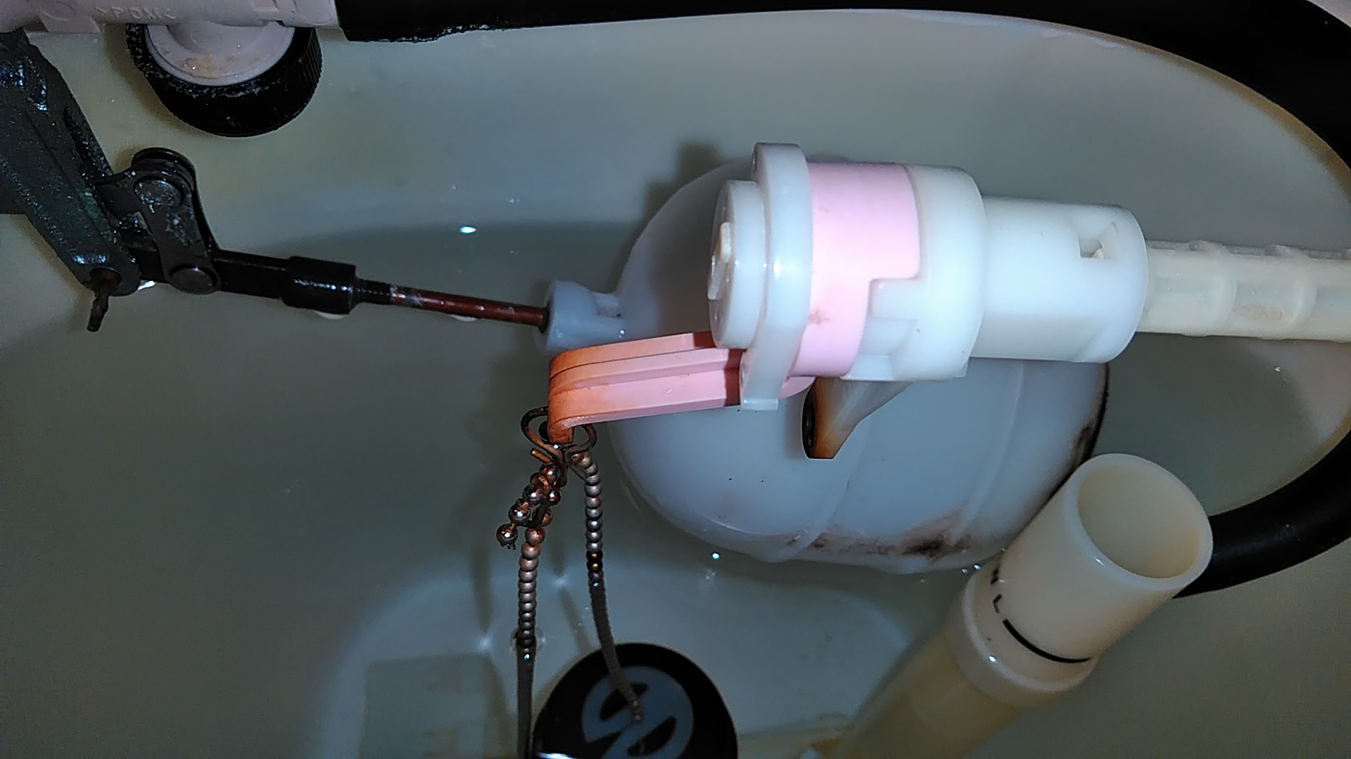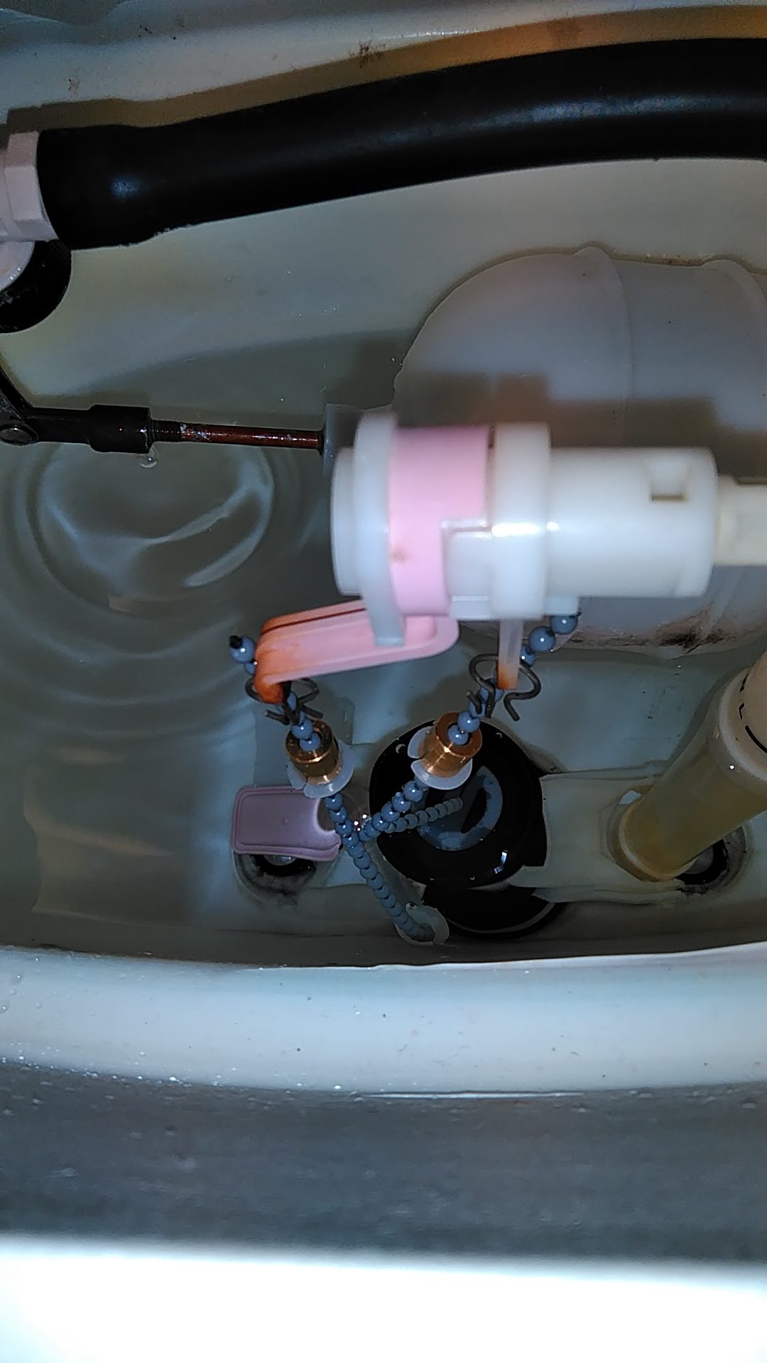 本日は、便器にチョロチョロと水が流れっぱなしになるとの出動依頼がありました。この手の依頼は良くありまして便器に水がチョロチョロと流れる原因のほとんどがタンク内部に問題があります。今回の案件はTOTO製のトイレでタンク底にある排水弁のゴムパッキンが劣化したことによる水漏れで、このタイプのTOTO製排水弁で良く起こる症状です。また、よく見ると【小】の方の鎖も切れており、まともに使用出来ていない状態でした。水漏れだけならゴムパッキン交換だけで十分ですが鎖切れは排水弁毎の交換になります。新しい排水弁は鎖もプラスチック製になり錆びて切れる事もないため排水弁を交換することで全ての問題が解決されてお客様にも喜んでいただきました。