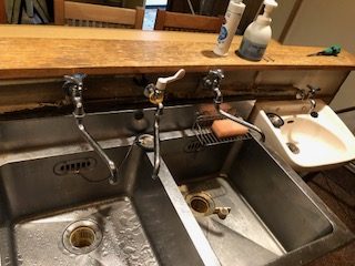本日は飲食店を経営しているオーナー様からのご依頼で厨房にあるシンク周辺の配管から水漏れするとの事でご依頼頂きました。ご訪問させて頂くとシンク周辺にある給水管から水が漏れ続けている状況でした。営業時間までに修理して欲しいとのご希望でした。漏れている配管を切断し新しく組み直す作業をさせて頂きました。1時間ほどで配管が組み終わり何とか営業時間に間に合いました( ;∀;)