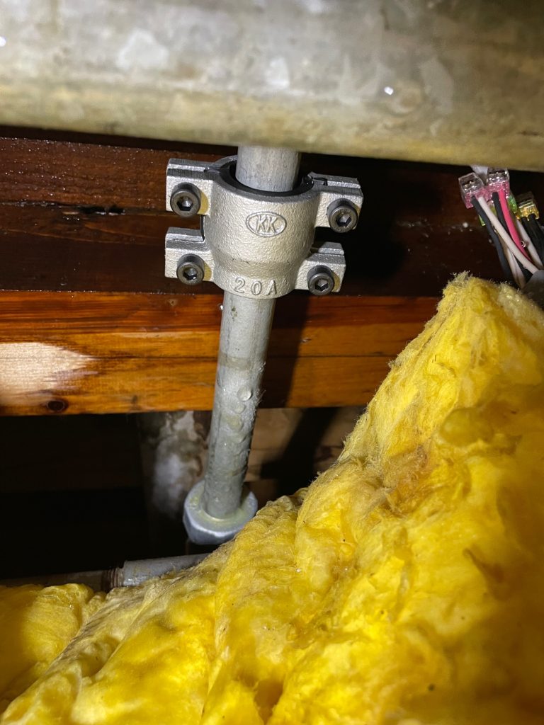 持ち合わせていた鉄管の応急処置に使用する圧着ソケットで止水をすることで水漏れは解消されました。
