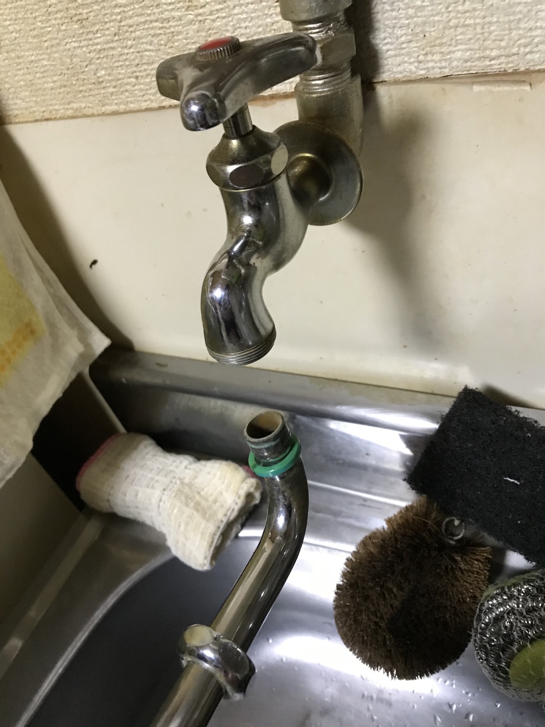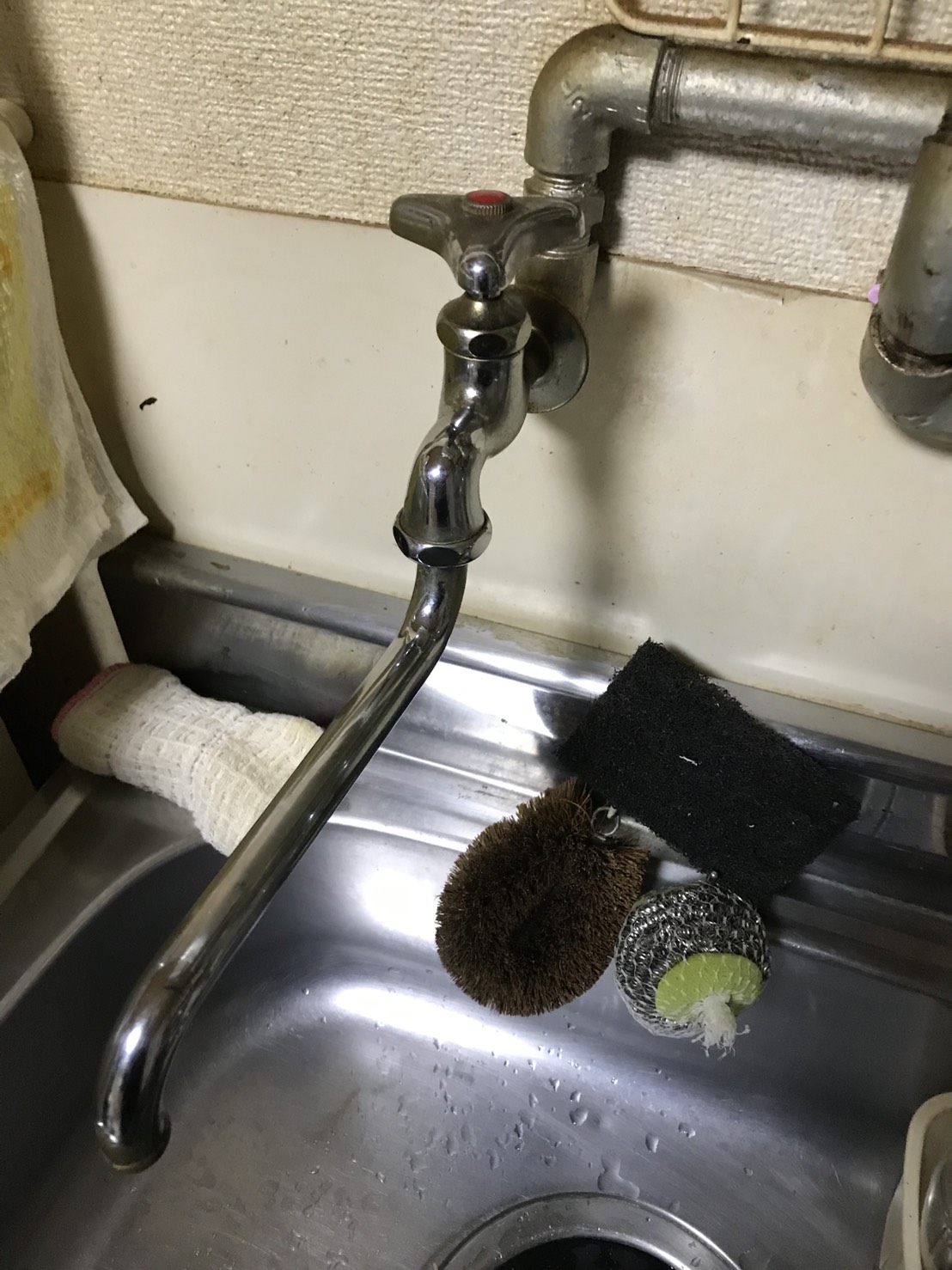 築年数も古いアパートで、台所蛇口には水とお湯が別々となった昔ながらの単水栓が取り付けられていました。