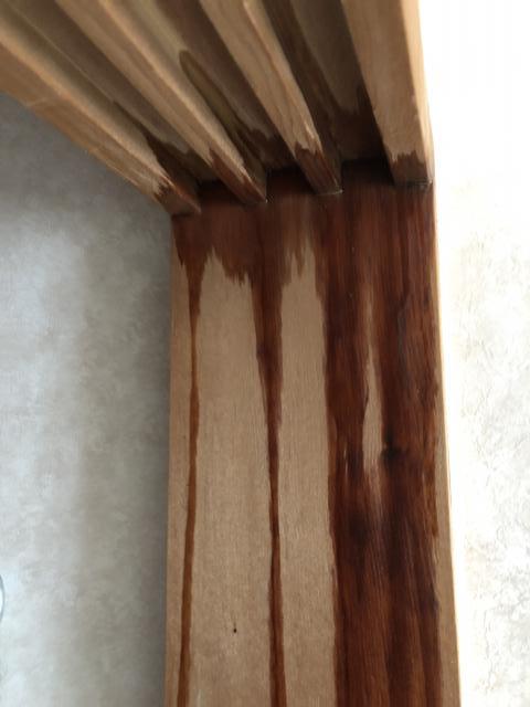 現場はアパートの一室で、押入れ付近の天井から襖の木を伝って床まで漏れてきていました。