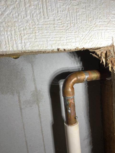 壁を開けると銅管の一部からピンホールしており、こちらを補修しなおして水漏れは解消しました。
