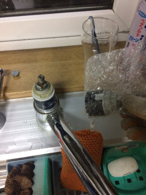 本日は、千歳市のお客様からの依頼で、台所の蛇口の水漏れ修理の依頼でした。早速、訪問し確認してみると止水しても蛇口の先端からポタポタと水が止まらない状況でした。年数もそんなに経ってないのもあり部品交換を提案し料金と修理内容をお話ししてから作業させて頂きました。今回は水栓カートリッジと言う部品を交換し改善致しました。