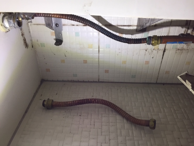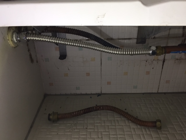 不幸中の幸いかのように、交換しやすい部品の破損でしたので、こちらのフレキ管を交換しました。