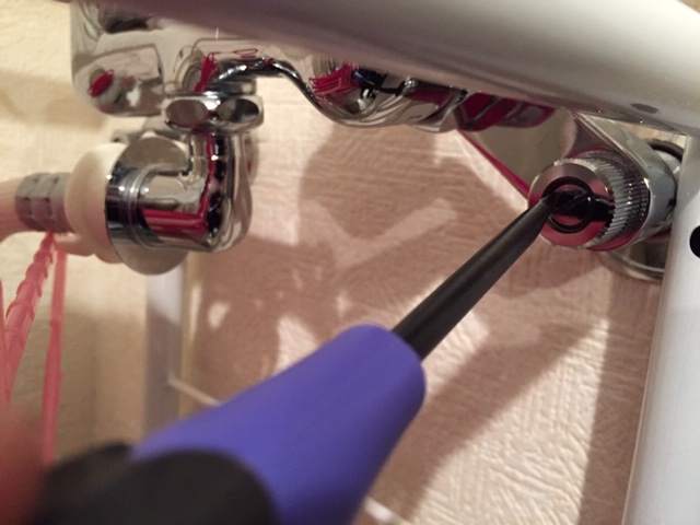 手始めに、蛇口の止水がされてないかどうかドライバーで開閉をしま・・・出ました。