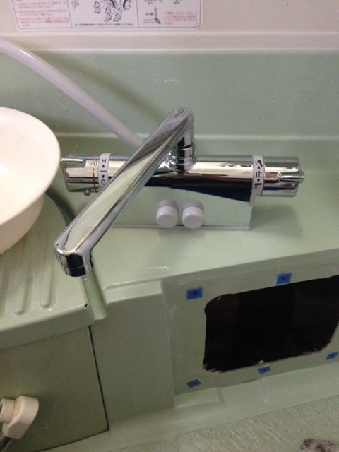 デッキ式というタイプのため、あらかじめ注文をして蛇口を取り寄せて施工しました。