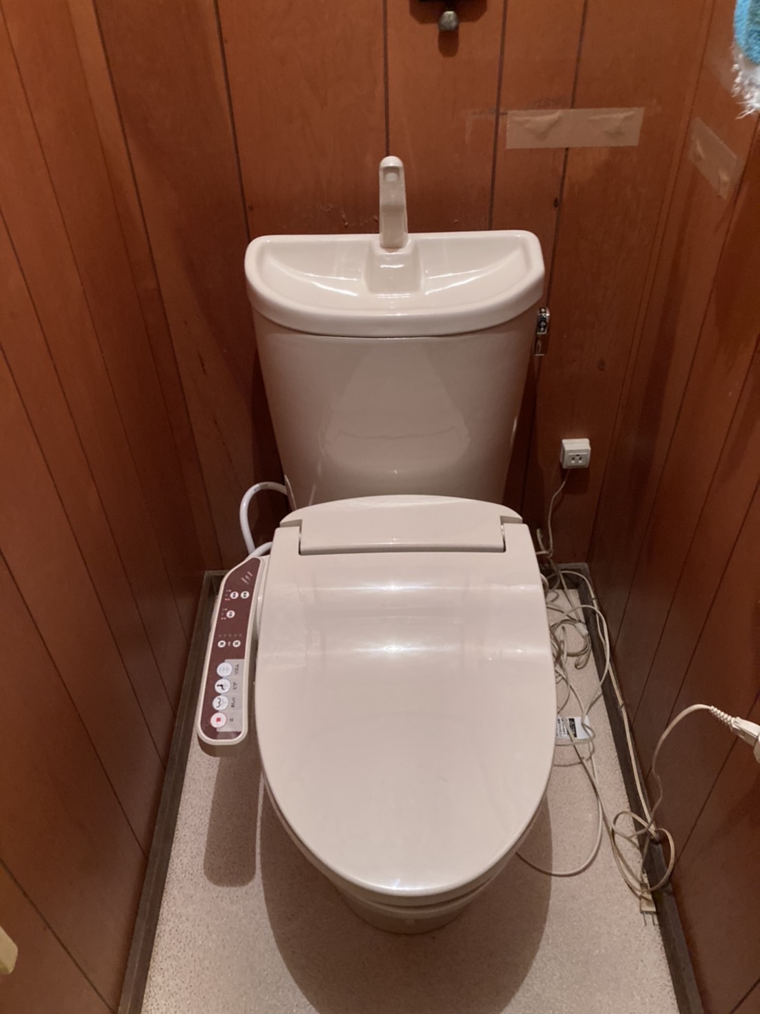 本日は、温水洗浄便座のリモコン部の下あたりから水漏れしているとのことでお伺いしました。