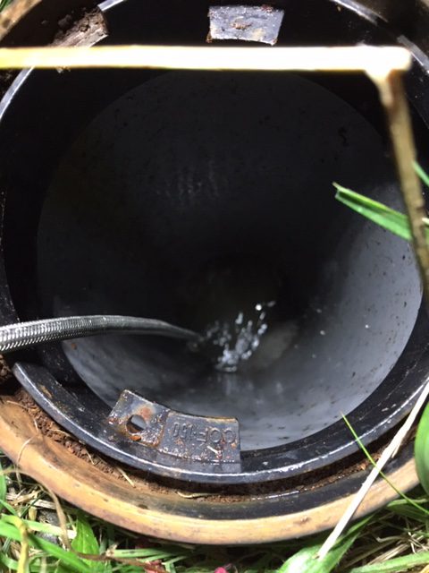 高圧洗浄機を使用して排水管の中を洗浄していき、最終的には濁流のように抜けていきました。
