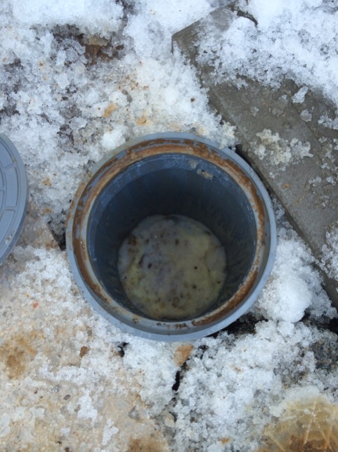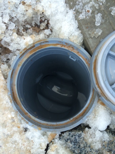 雪もまだ残っていて汚水マスを探し調査した結果の原因判明でした。お客様に原因と修理内容を説明し了解後作業に入りました。