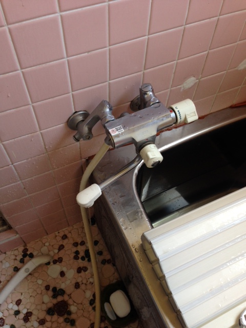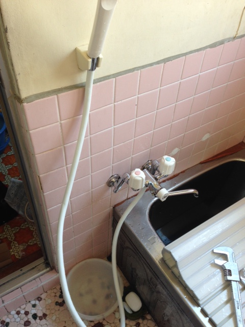 温度調整はボイラーでやるとのことなので、ハンドル式の水栓に交換しました。