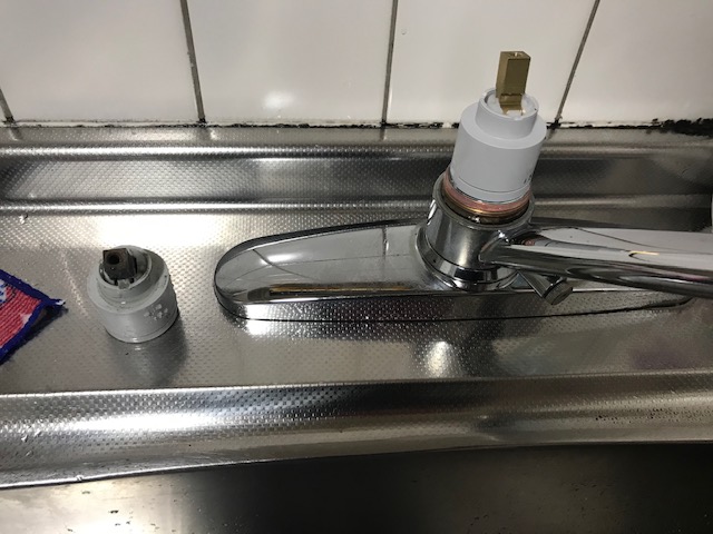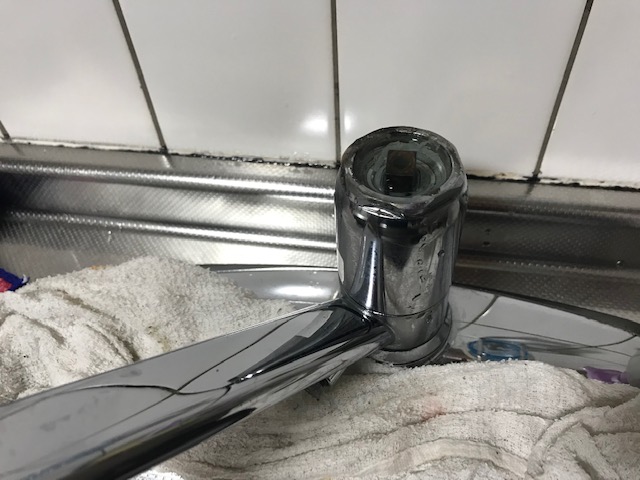 不具合箇所は台所蛇口で、レバーを上げ下げする部分が壊れてしまって止まらなくなったようです。