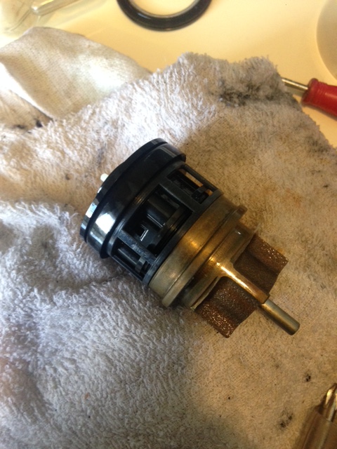 内部を見てみると、おそらくピストンバルブという部分が劣化していて、水の水量調整ができなくなっていました。