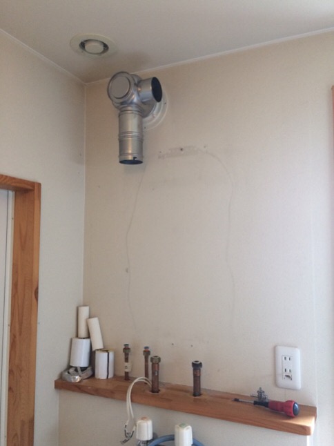 追い炊き付のボイラーで管関係も・吸排気筒の交換もして完了です。完成写真撮り忘れました。(^^♪
