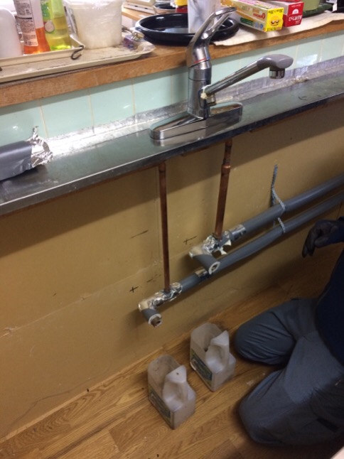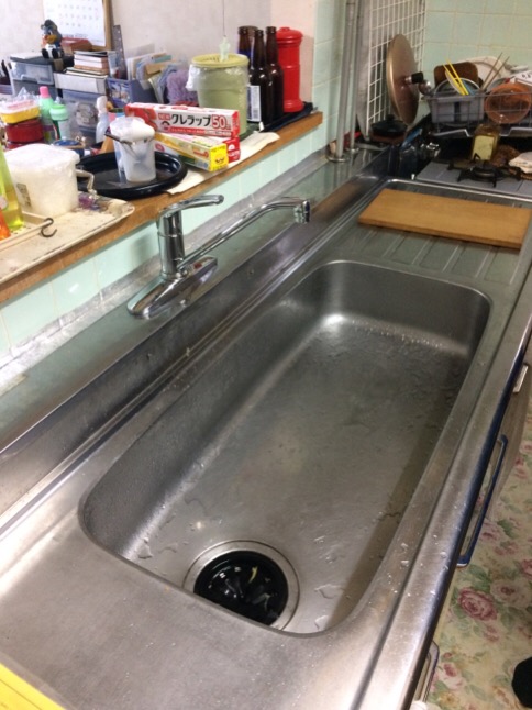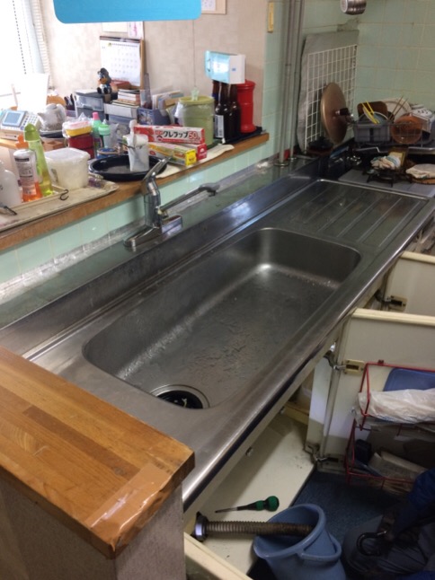 本日は、台所の蛇口から水漏れしてるので見てほしいとの依頼でした。早速訪問し症状を確認してみると、結構な勢いで水漏れしています。”(-“”-)” 部材交換で修理可能な感じでしたが、お客様の要望により本体ごと交換を希望していましたので持ち合わせの車内在庫で見積もりし了承後、交換作業をさせていただきました。台所下の収納部に点検口が無い為、台所を一旦、脱着してからの交換作業です。台所を脱着し、古い水栓を外し、新しい水栓を取り付け、台所を戻して作業完了でした(^_-)-☆