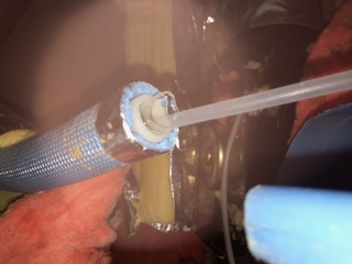 本日は夜11時頃にお部屋の水が出ないとの事でお電話頂きました、お伺いさせて頂くと台所の水のみ出ないとの事です、配管を確認すると架橋ポリ管で組まれており、解氷作業としては配管を一度切断して配管断面にスチーム解氷機を入れて解氷を行い。解氷完了後切断して配管を再度接続して通水を行い水漏れが無く台所の水が出ることを確認したら作業完了です。