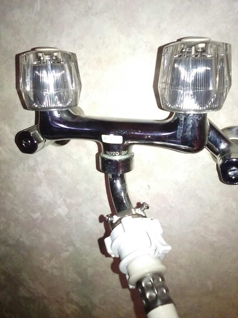本日は洗濯機の蛇口のハンドルの付け根から水が漏れているので見て欲しいとの依頼で行ってまいりました。拝見すると確かに漏れてい