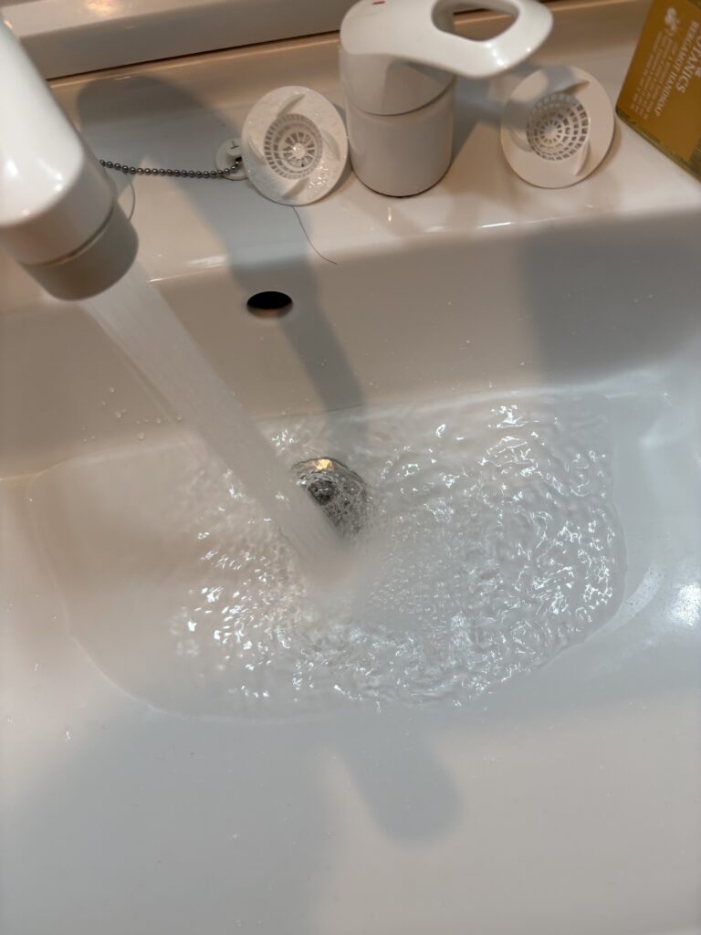 洗面台の排水からなかなか水が流れていかないとのことです。