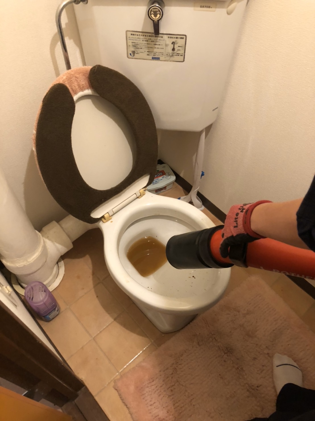 本日は、トイレを詰まらせて流れなくなったと集合住宅のお宅にお邪魔しました。