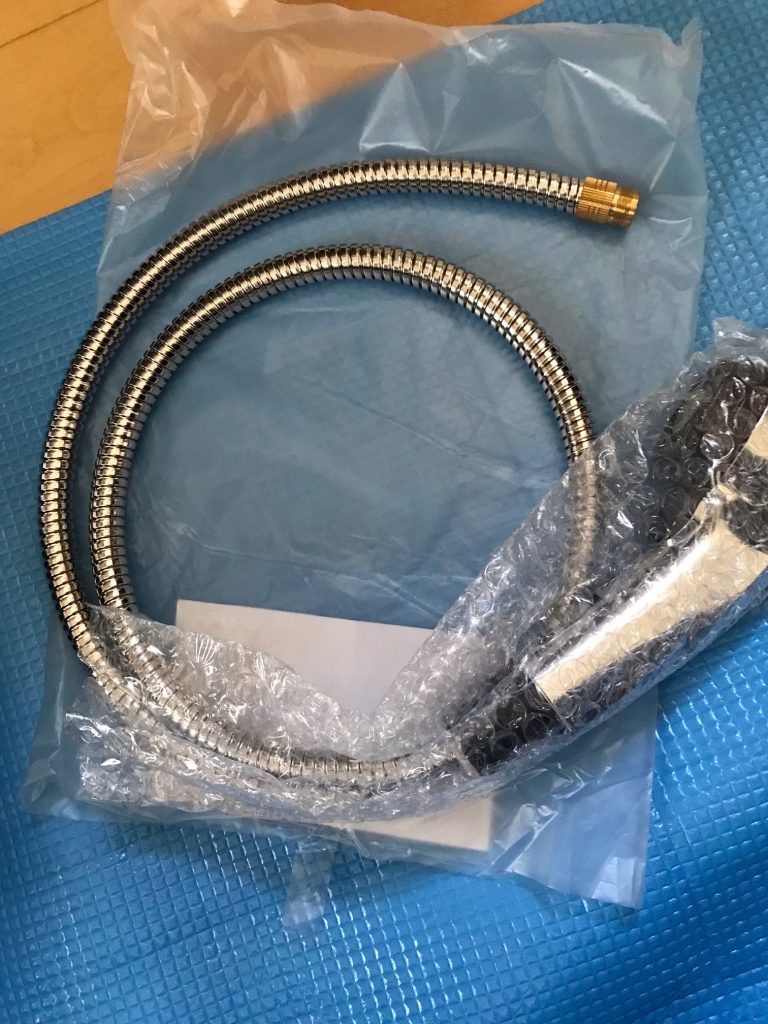 新築のころからおそらく使用しており、蛇口全体も劣化していますがホースもかなり変色している状態でした。