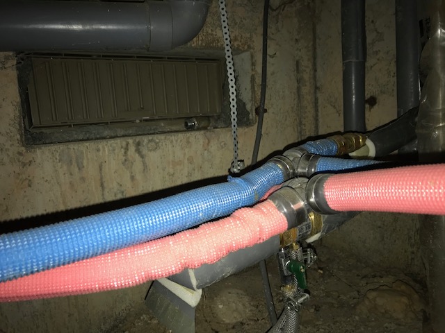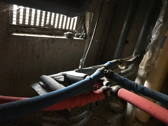 水道管が床下で配管されているので、床下に潜って調査することになりました。