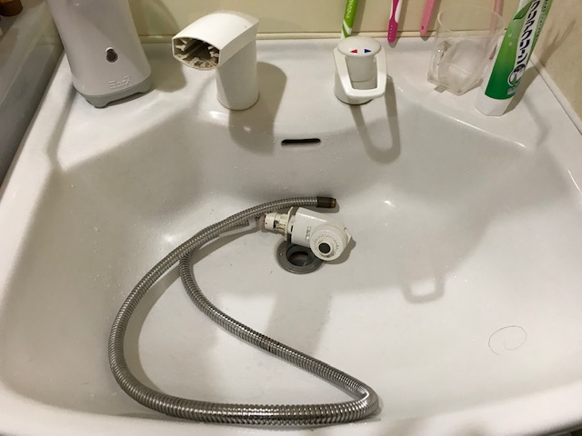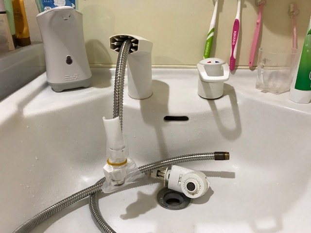 水を使用していない時には問題ないですが、水を使うと引き出し式のホースから水漏れしてきていました。