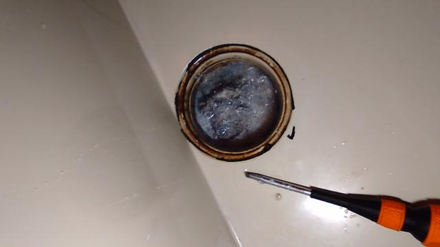 余りにも詰まりすぎているので薬品などは効果は薄く、直接取り除く作業を行いました。
