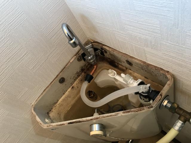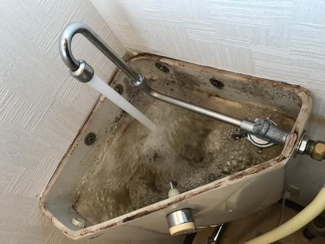 原因は、タンク内部のボールタップの劣化により止水する能力が失われていました。