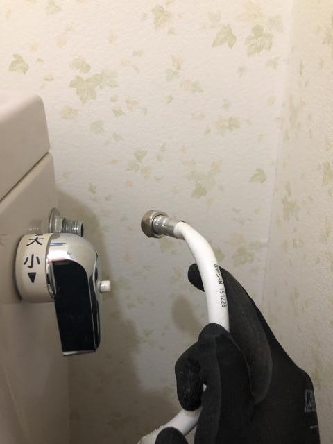 お伺いして現場を見てみると、トイレに入った瞬間に給水ホースが捻じれているのがわかりました。
