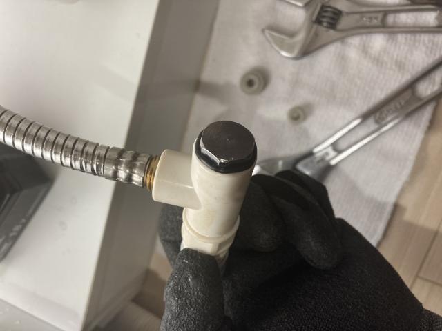 中折れした部品を取り出し、再度取れた部品を取り付けなおして通水テストを行い、正常に使用できるようになりました。