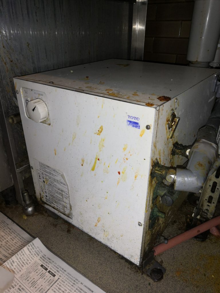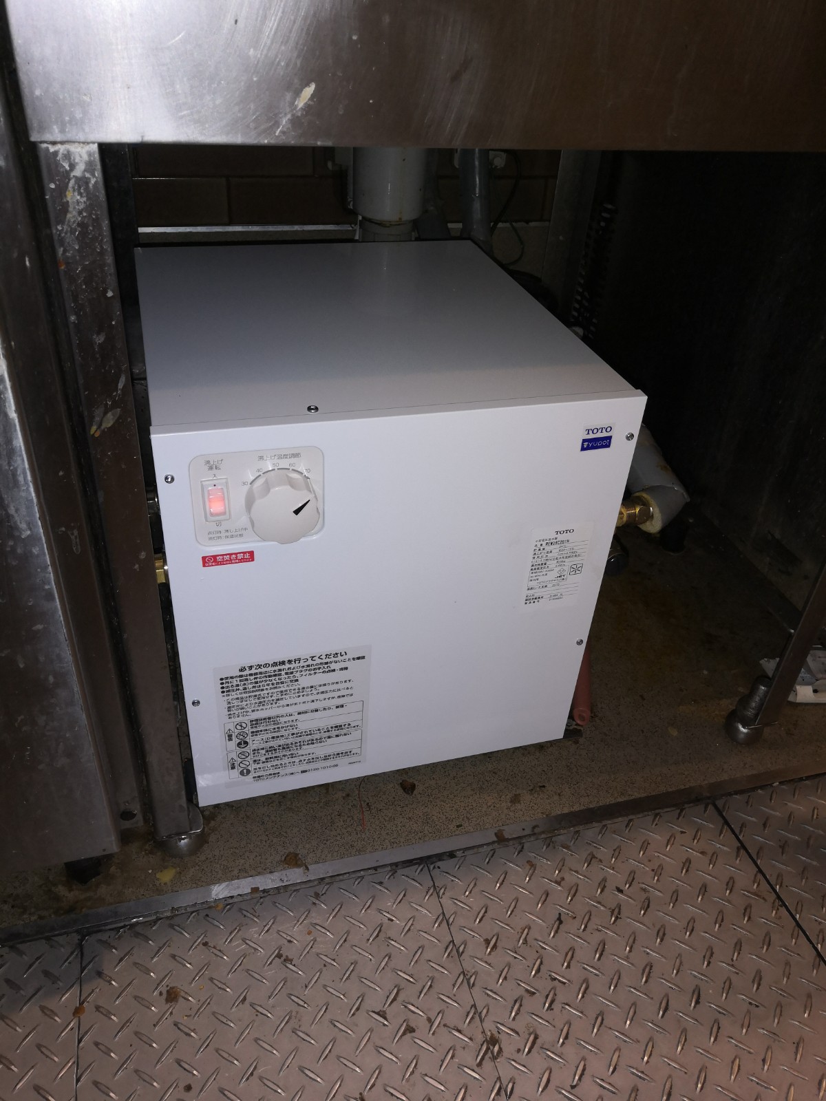 電気温水器を使用している、飲食店様から「お湯が出ないです。洗い物が水だと大変なのですぐに来てください!!助けて下さい!!!!」とお電話いただき、出動しました(‘◇’)