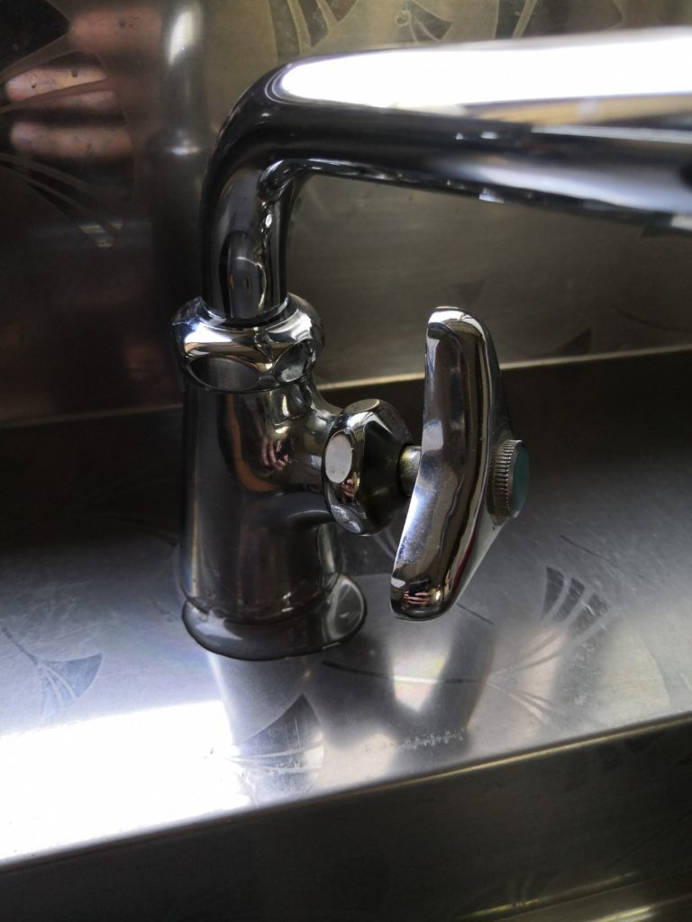 左の水栓はパイプと本体がつながってる部分から漏れてきていました。右はハンドルと本体の接続部分から水漏れ。