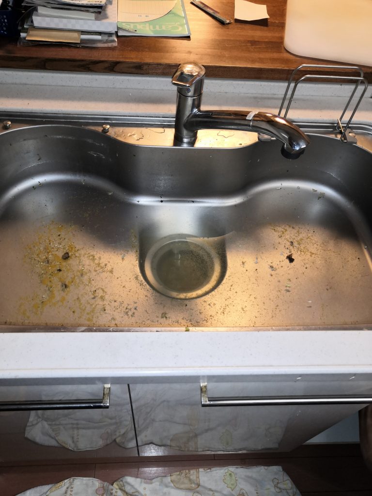 本日は、台所が詰まって大変だ!!とお電話いただき、すぐに出動しました。