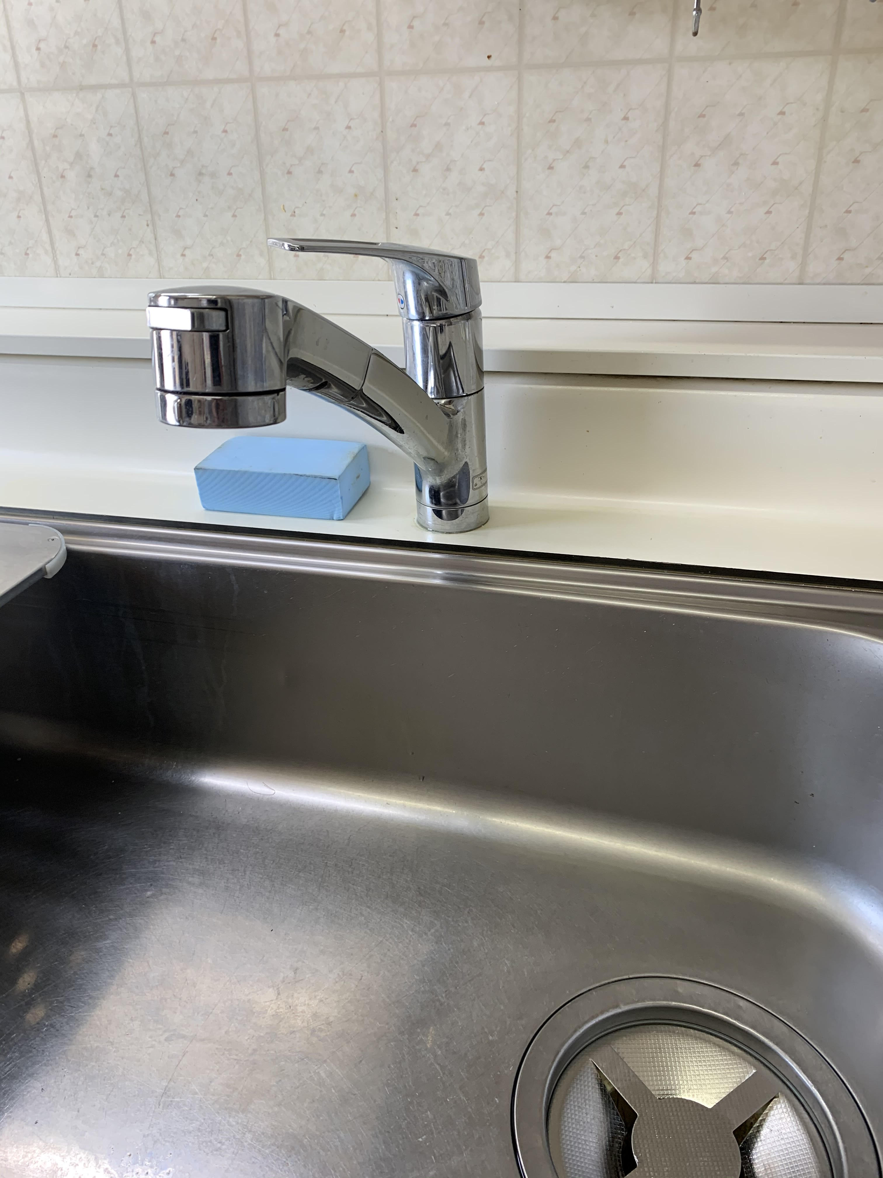 現場にて水漏れ調査を行ってみると、蛇口の根本から染み出すように漏れており、それがシンクの裏を通って床に流れていました。