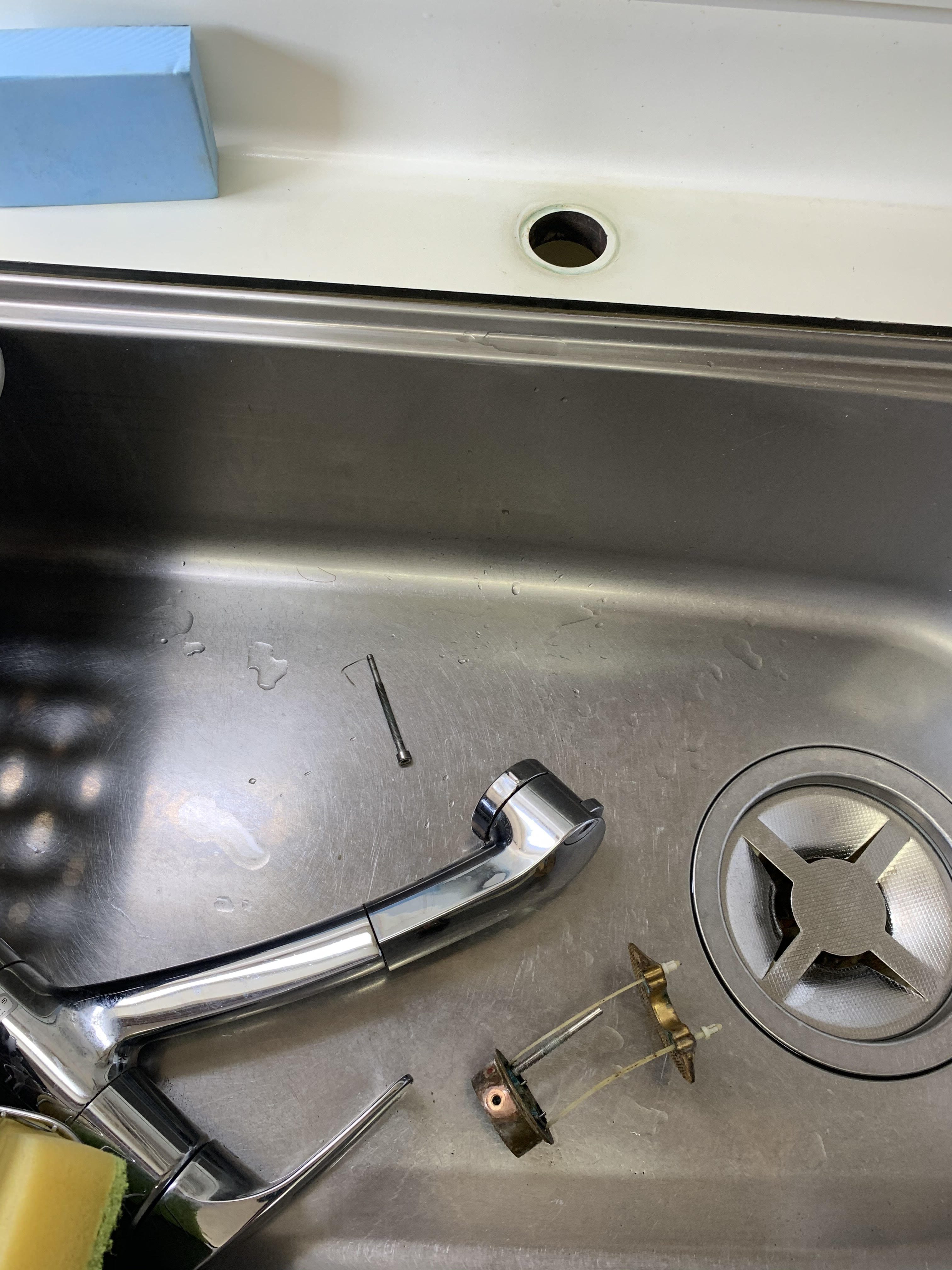 蛇口本体内部からの水漏れでシンク下から覗くとかなりサビもひどく、お客様と相談をして本体ごと交換する流れとなりました。