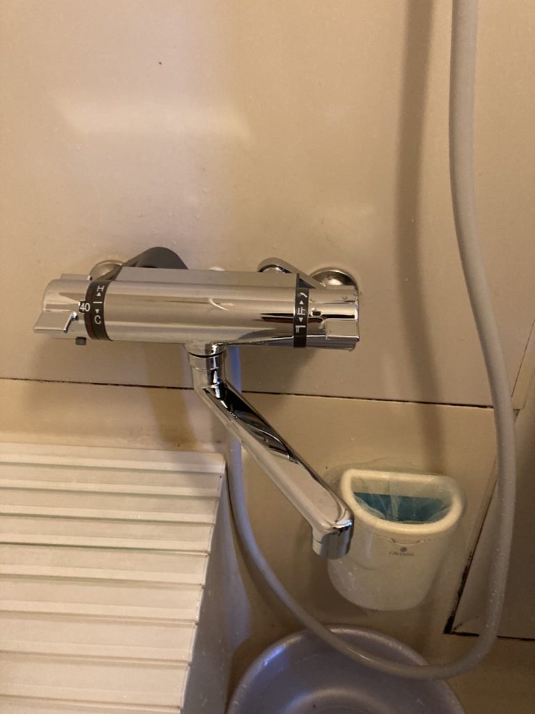 お客様と相談をして、お湯の温度の調整がしやすいサーモスタッド式というもので交換することになりました。