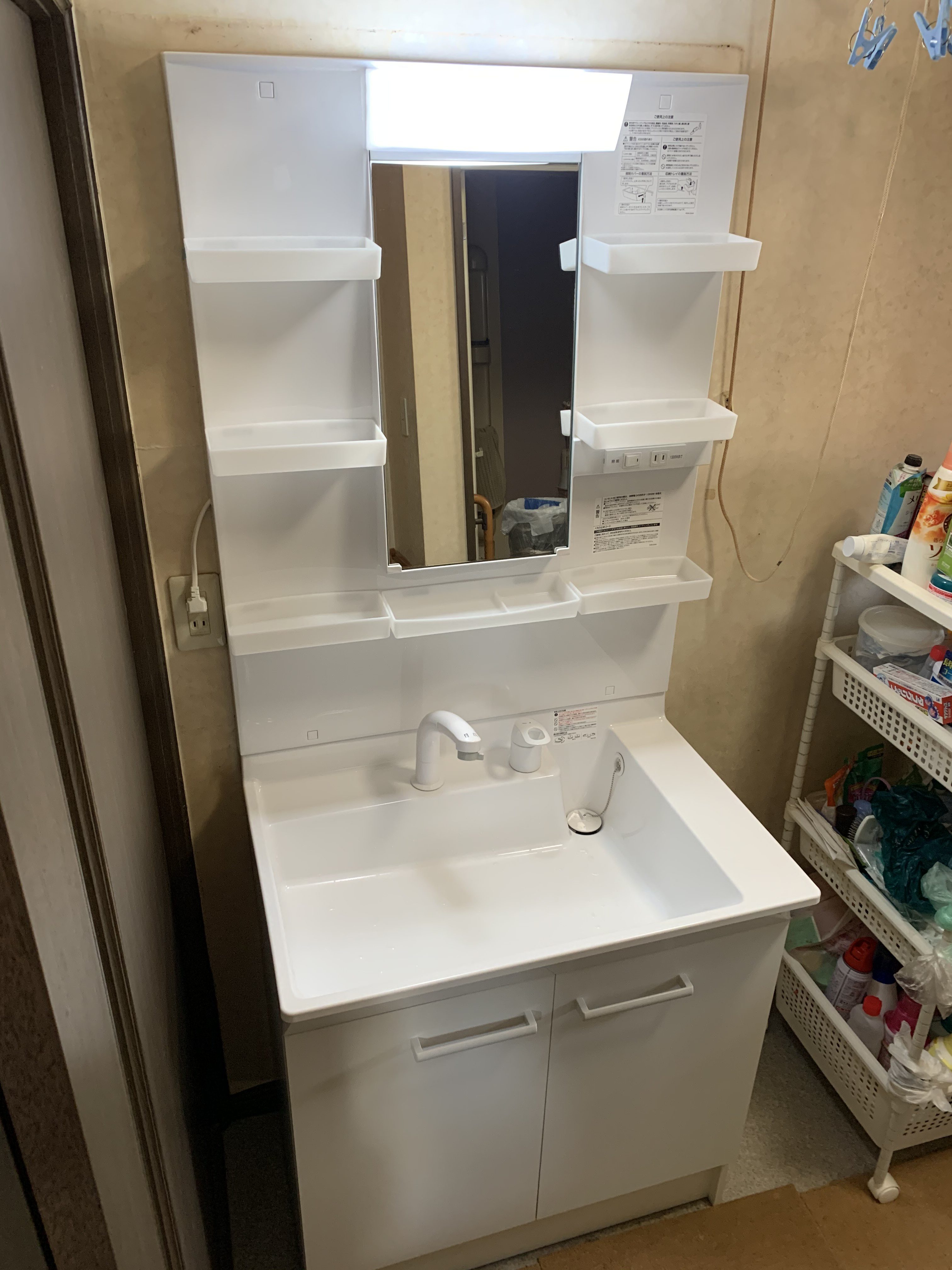 色々お話しをした結果、お客様から「洗面化粧台の収納も少ないし、思い切って新しい洗面化粧台にしようかな」と言っていただき、洗面化粧台交換となりました。