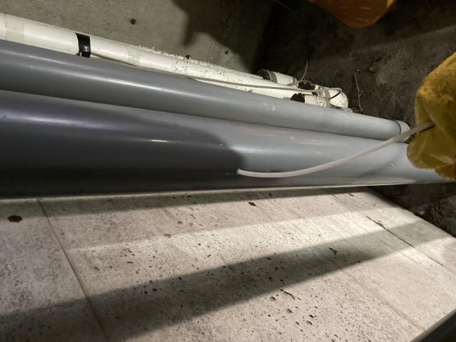 現場はアパートでしたので、一階にある車庫内を調査すると、排水管を触ると明らかに凍結して冷たくなっているのがわかりました。