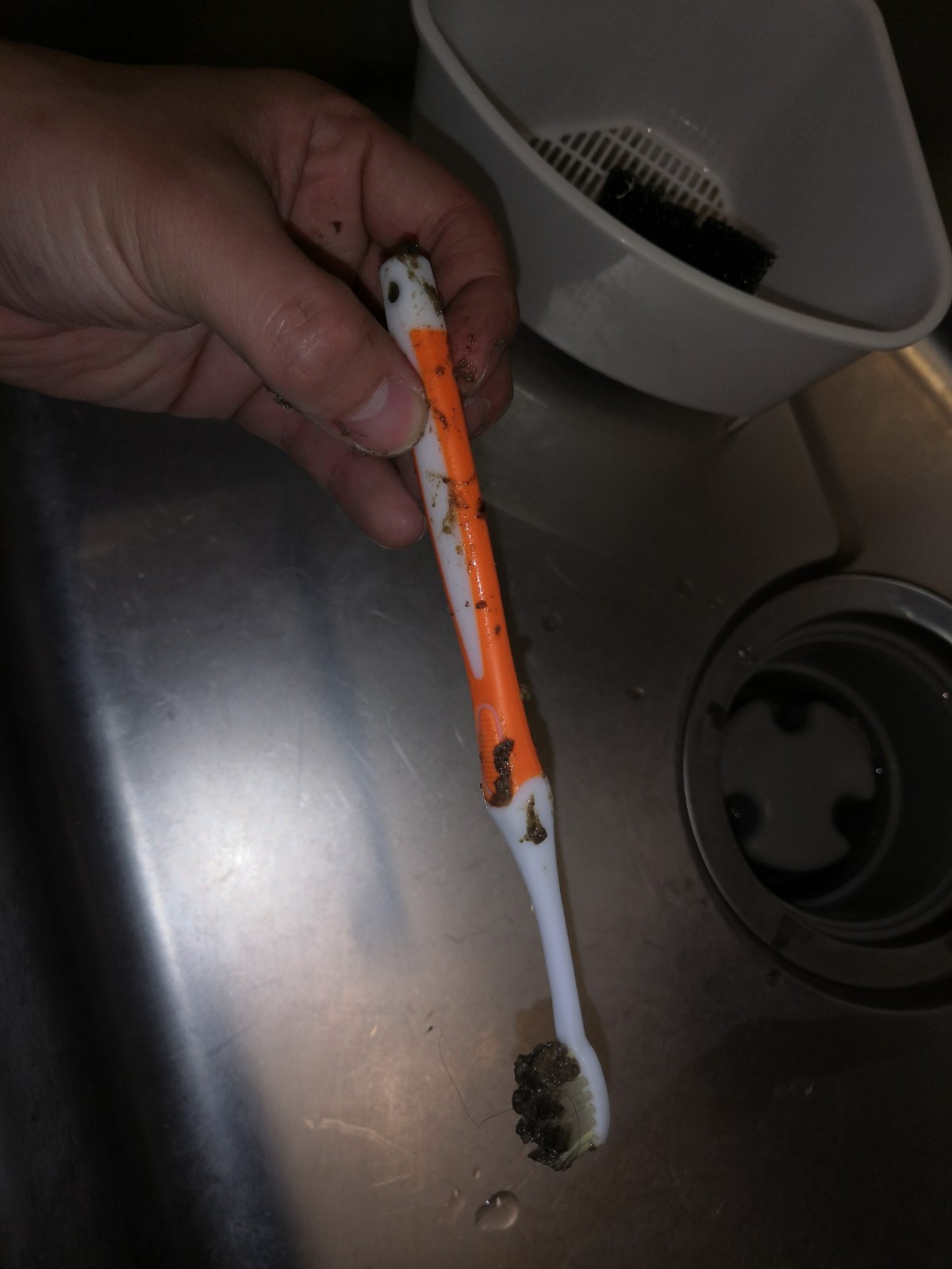 おっ!!歯ブラシ発見!!何とか頑張って取り除きます(;_;)