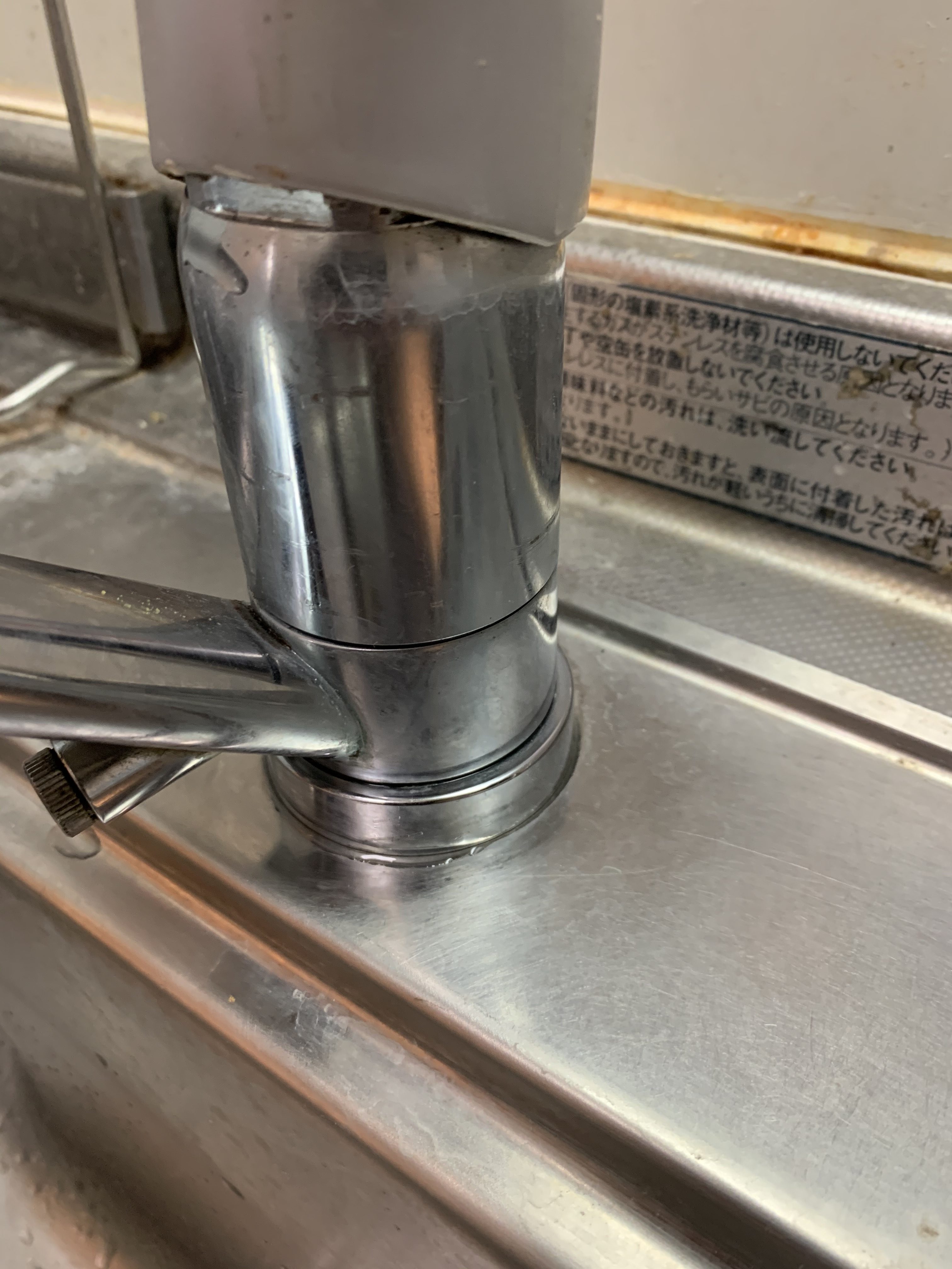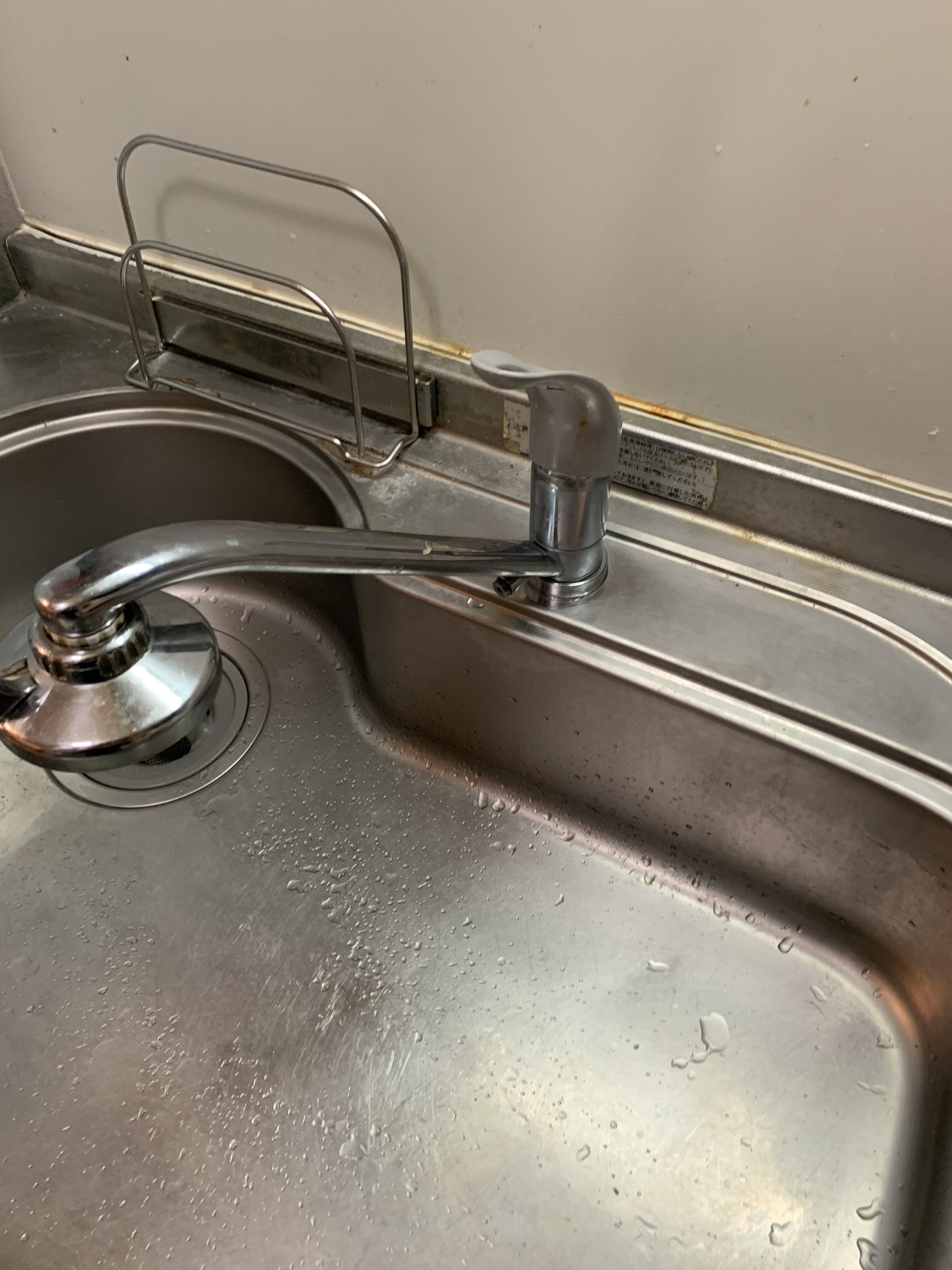 本日は、台所の蛇口から水が漏れているとお電話いただき、出動しました。調査してみると、台所水栓の根元付近から水が漏れており、かなりの年数を使用しているとの事もあり、台所水栓の本体交換をご提案させていただきました。