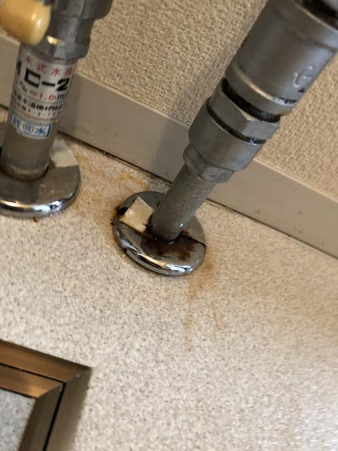 場所は元栓のレバーの横から伸びている立ち上がりの管で、そのつなぎ目の部分からジワジワ水漏れしているようでした。